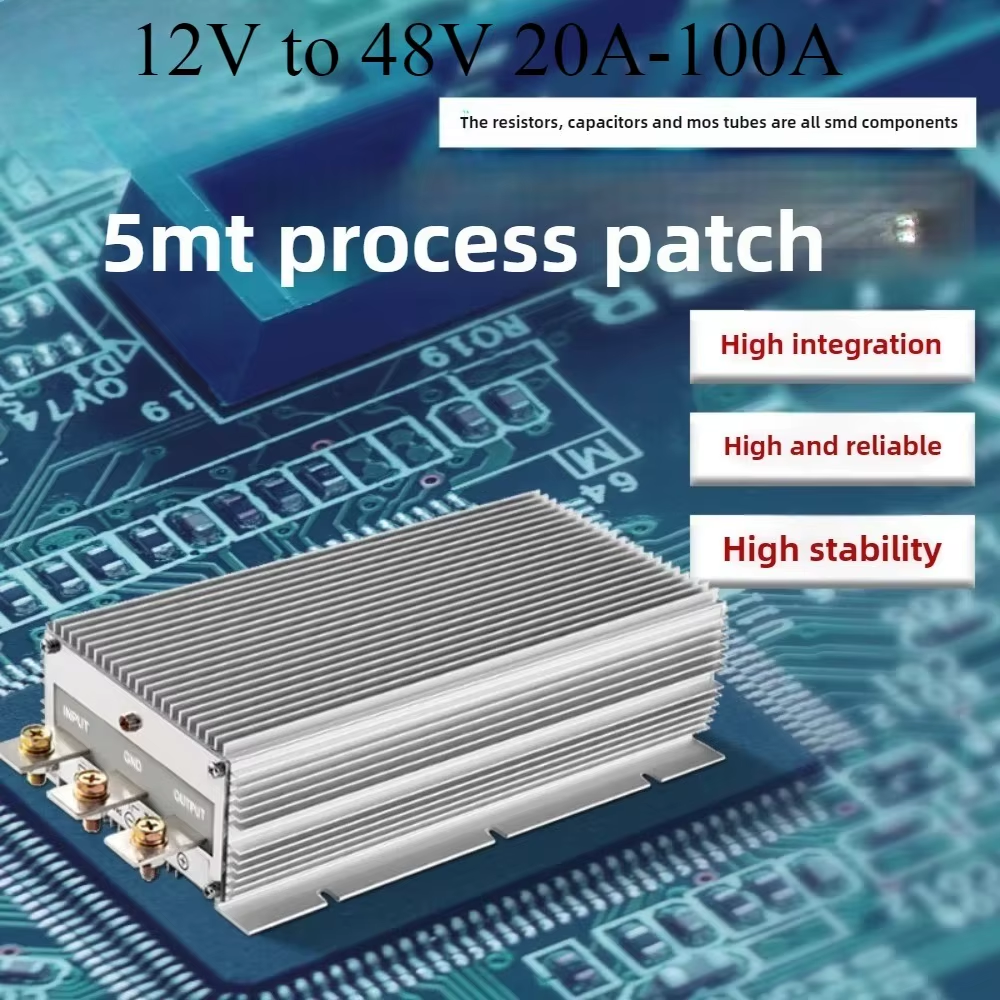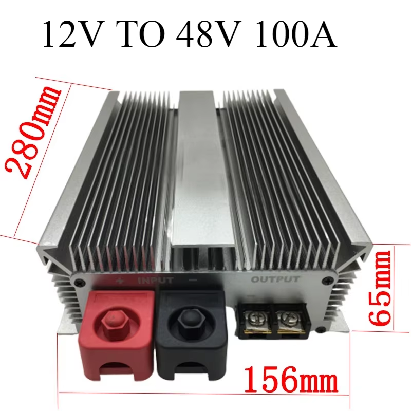 12V to 48V Boost Converter, 100A—high-efficiency, waterproof, automotive-grade DC-DC step-up regulator with full protection features.