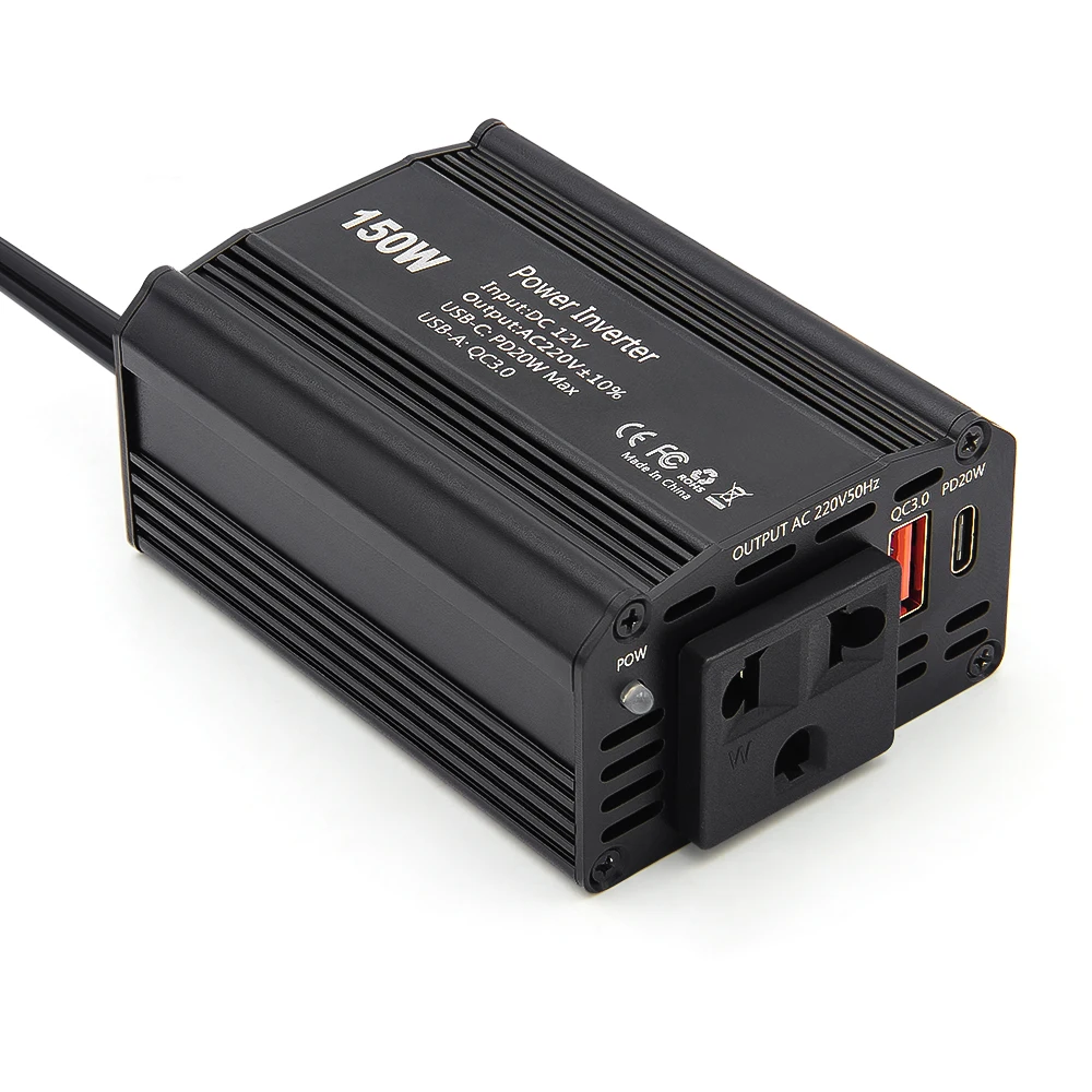 The 150W–300W Car Inverter, 12V to 110V/220V, is a robust and efficient power solution for your vehicle, delivering reliable AC power for a wide range of electronic devices. With peak output power up to 600W and continuous output options of 150W, 300W, and higher, this inverter is perfect for laptops, small appliances, and mobile devices on the go.