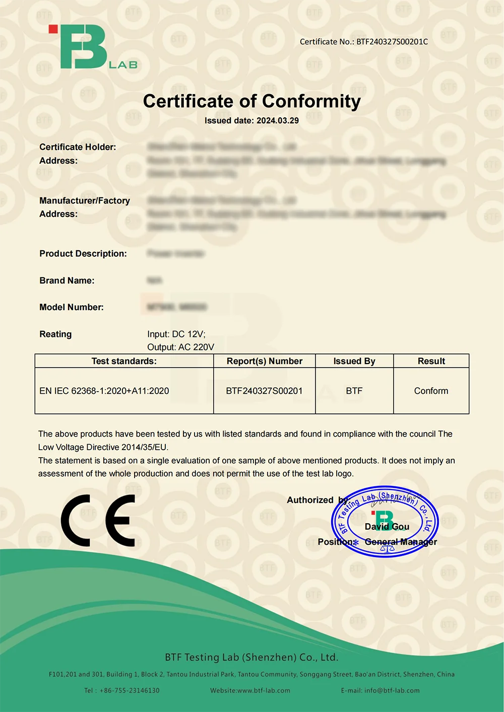With a conversion efficiency greater than 90%, soft start technology, and a no-load current draw of less than .8A, this inverter ensures stable, energy-efficient operation. The inverter is easy to use—simply connect to your vehicle’s 12V DC supply and enjoy 110V or 220V AC output wherever you travel.