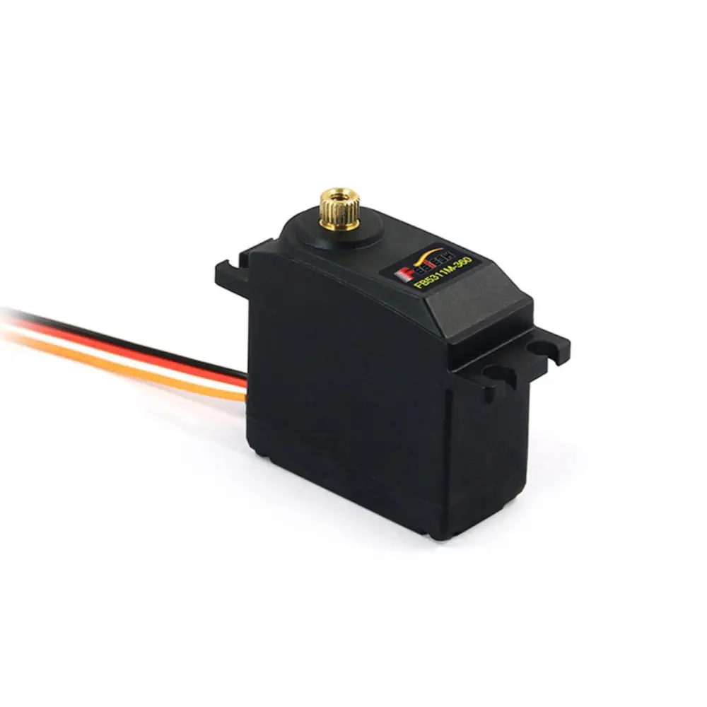 The 15kg Continuous Turn Servo w/ Feedback offers a 25T / 5.9 mm horn gear spline. It comes with copper gear and a core motor. It provides an operating voltage range between 4 – 8.4 V and a no-load speed of 50 RPM at 6 V.