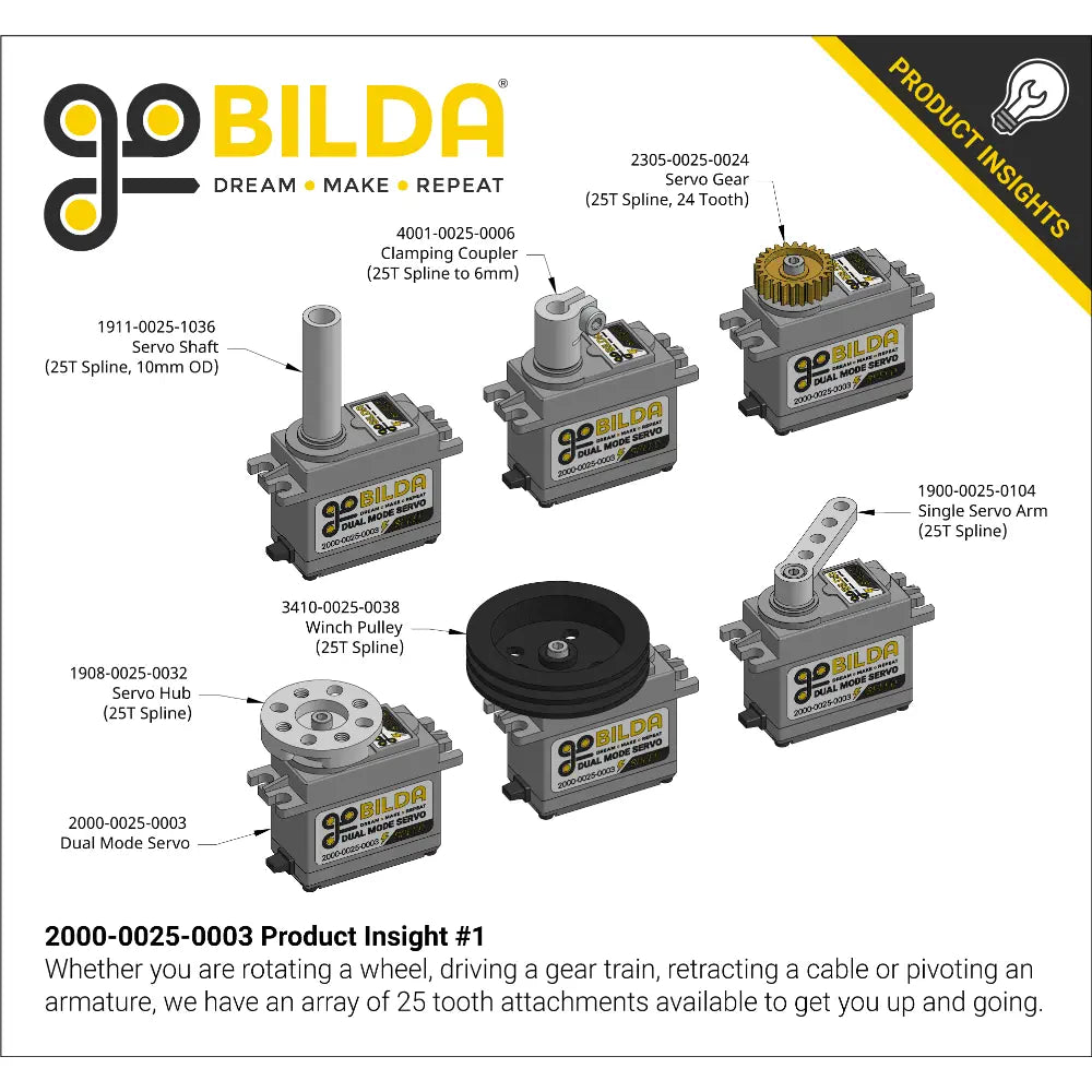 • 1x ServoCity 2000 Series Dual Mode Servo (25-3, Speed)