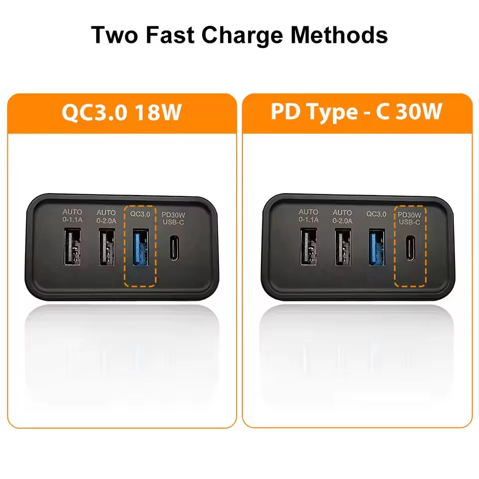 • QC3. Output: 5V 3.4A, 9V 2A, 12V 1.5A