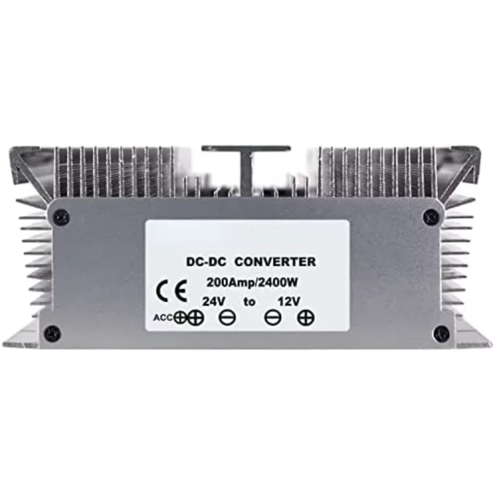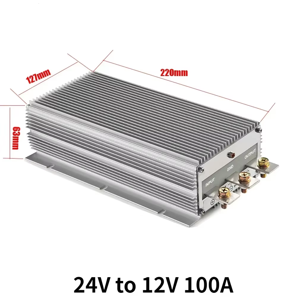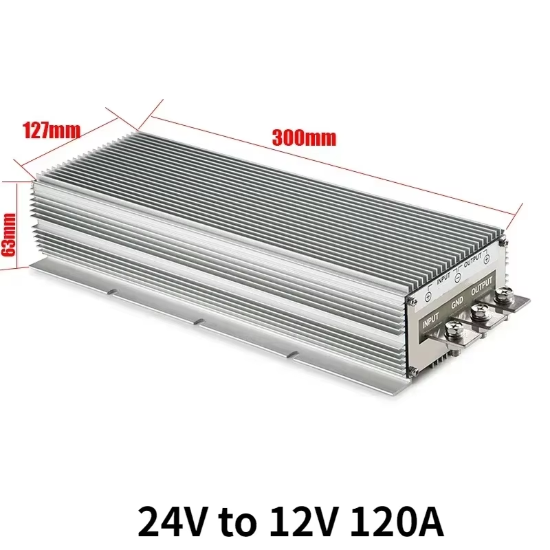 The 24V to 12V Step Down Converter is a robust, waterproof DC-DC buck transformer designed for high-power automotive and industrial applications. With an input voltage range of 18–35V DC and a stable 12V output, this converter delivers 50A to 200A output current and up to 2400W of power, making it ideal for large trucks, car audio systems, LED displays, motors, and more.
