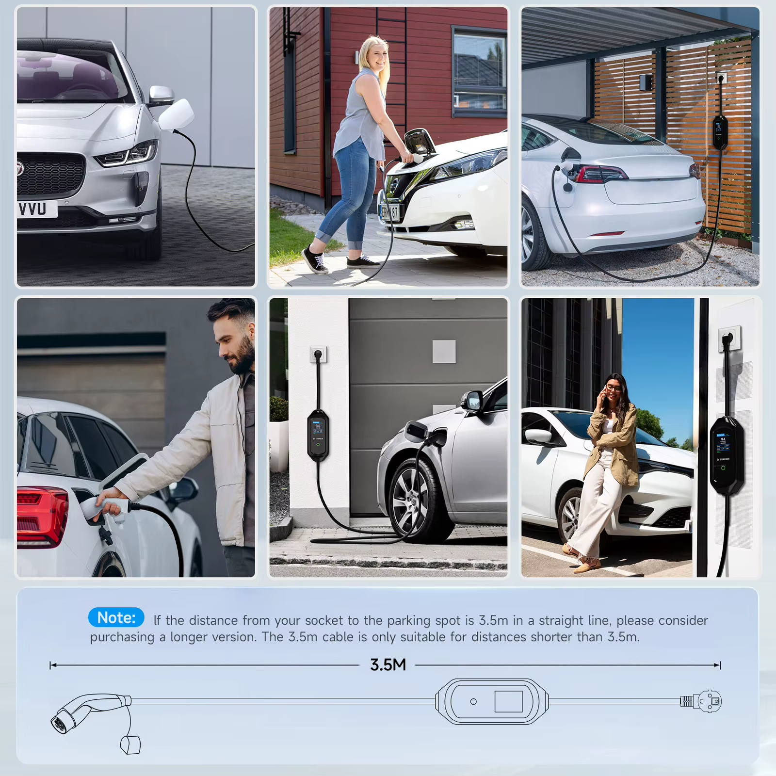 Plug-and-play simplicity means you can control the charger via the app or directly from the charging box. The charger auto-detects your vehicle’s protocol, making it perfect for multi-driver households and non-tech users. With a mechanical life of over 10,000 plug/unplug cycles and a 3.5-meter cable, this charger is built for daily use and long-term reliability.