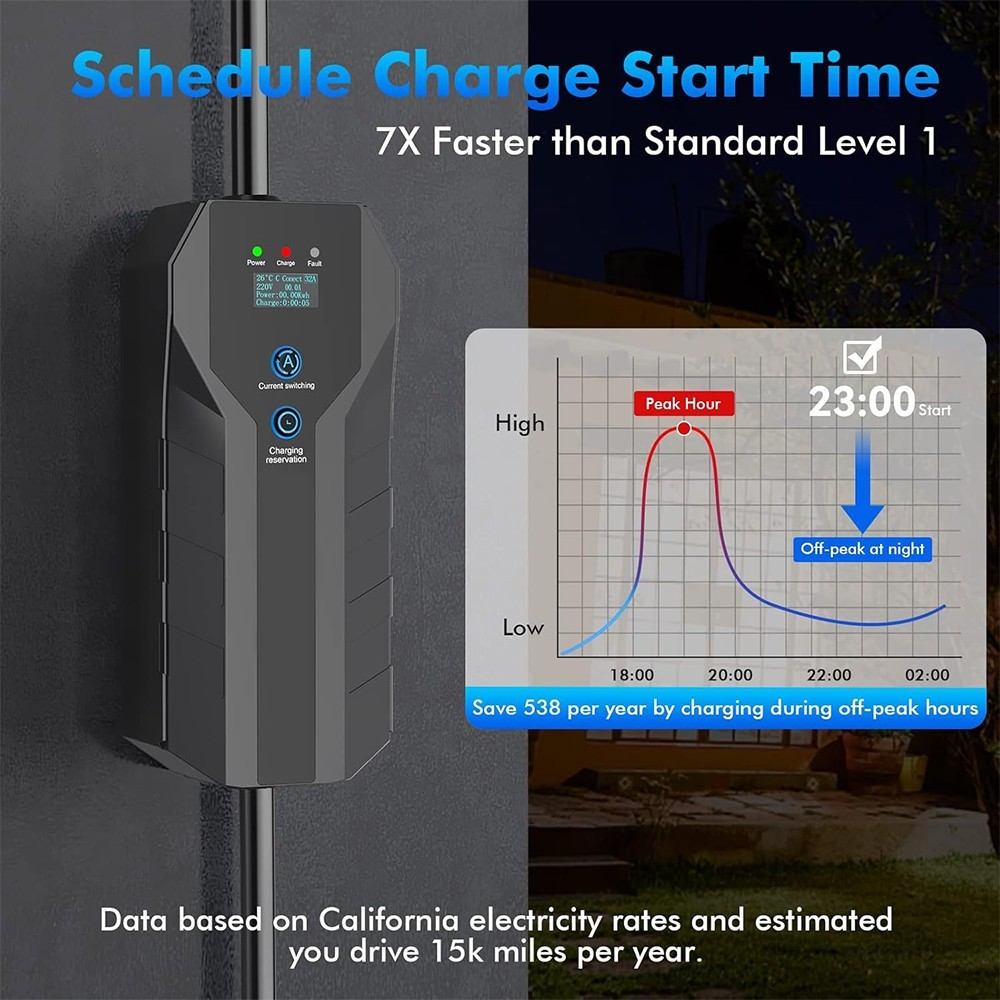 32Amp Level 2 EV Charger—23 ft J1772 cable, NEMA 14-50P, 240V, adjustable amperage, and fast, safe charging for all EVs.