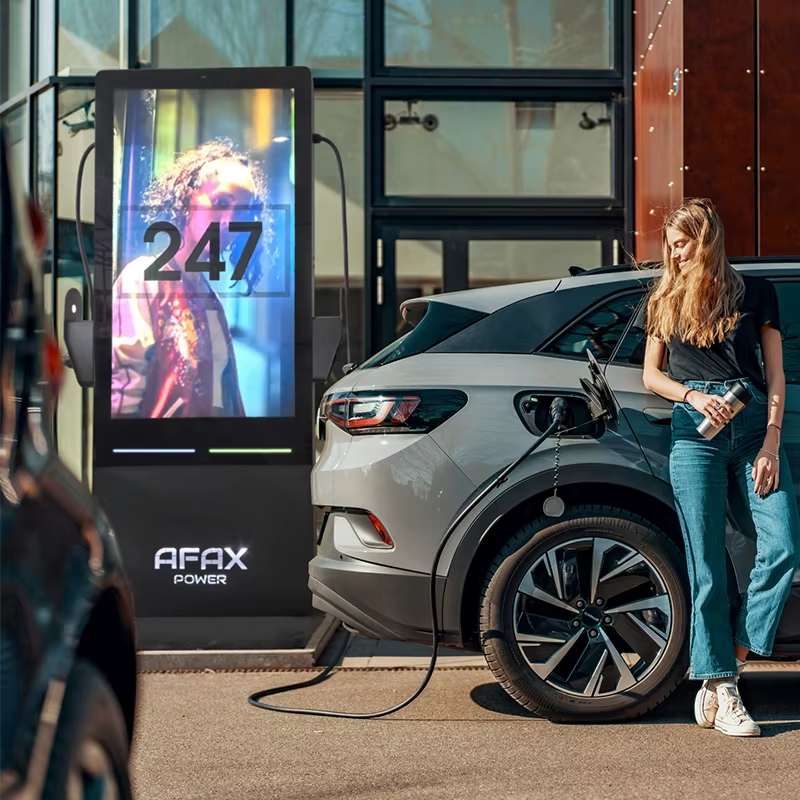 • 1x 44kW AC Charging Station with 55″ Advertising Screen
