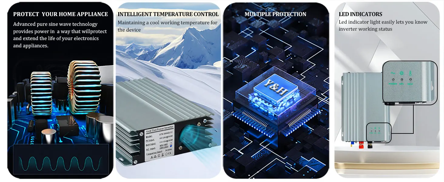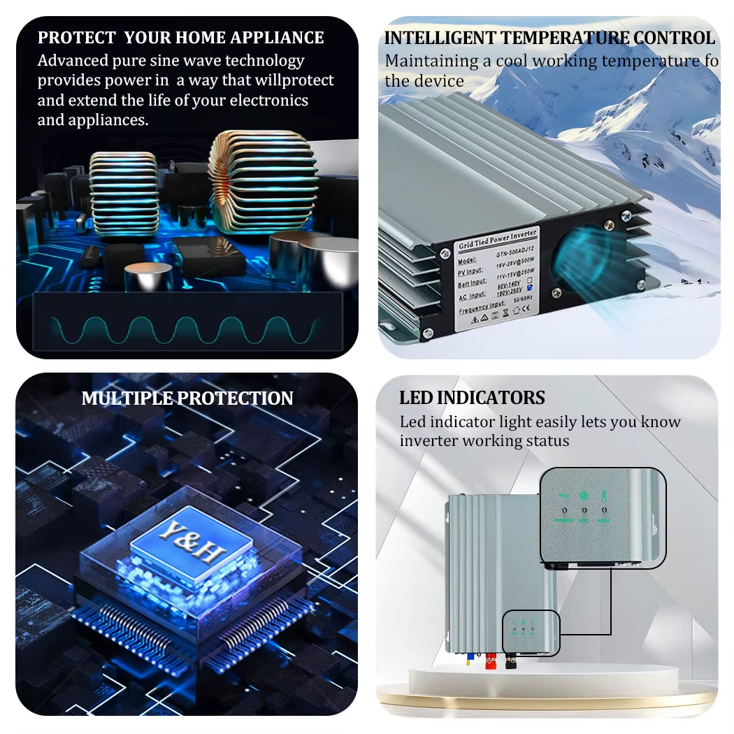 - 1 × 500W MPPT Pure Sine Wave Grid Micro Inverter