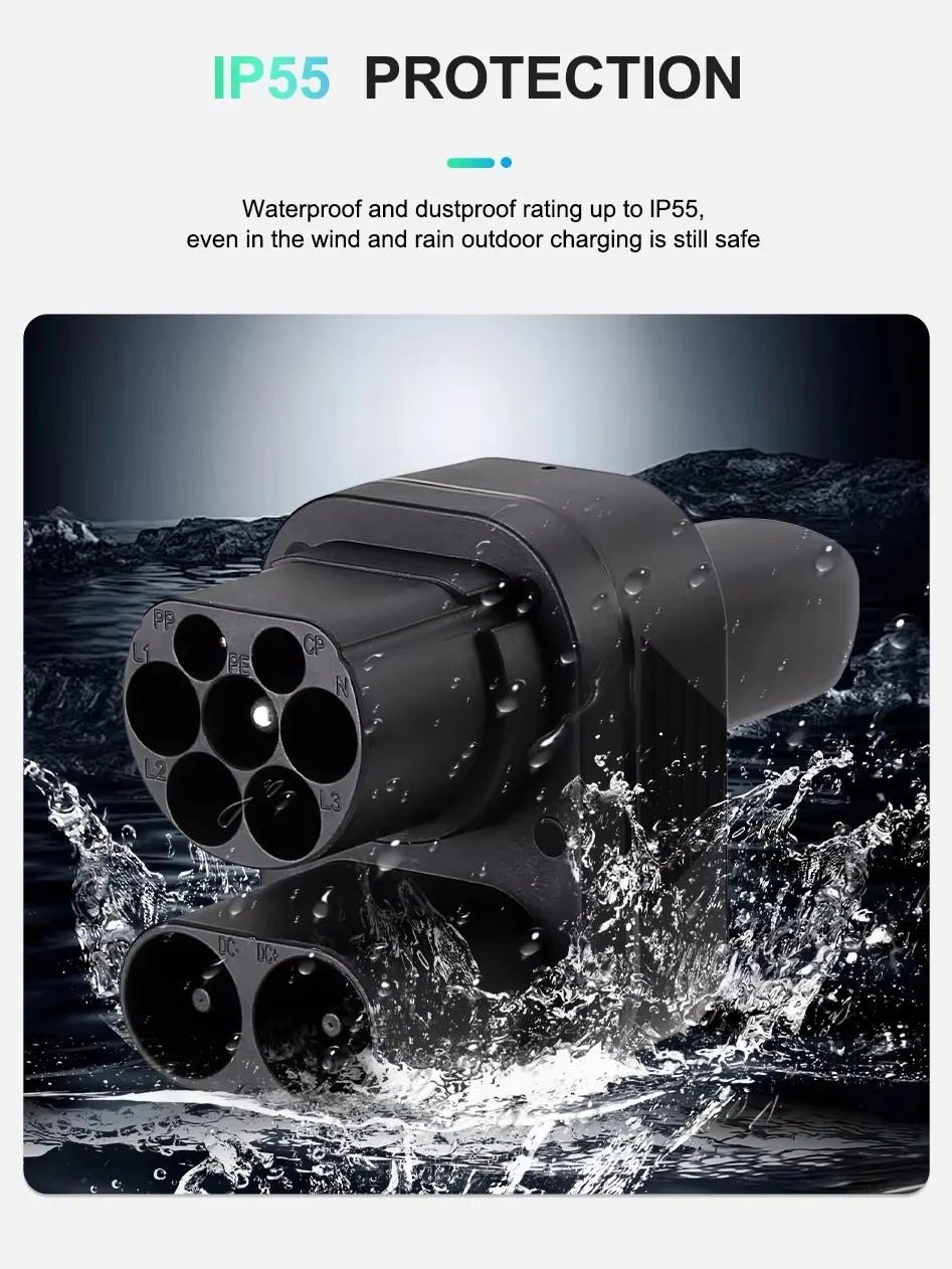 The upgraded model features non-slip stripes for improved grip and easier handling, as well as enhanced current throughput for higher safety and reliability. The built-in temperature kill switch automatically stops charging if the adapter reaches 90°C, protecting your vehicle and charging equipment. The silicon rubber sealing gasket and IP54 protection rating ensure reliable operation in various weather conditions.