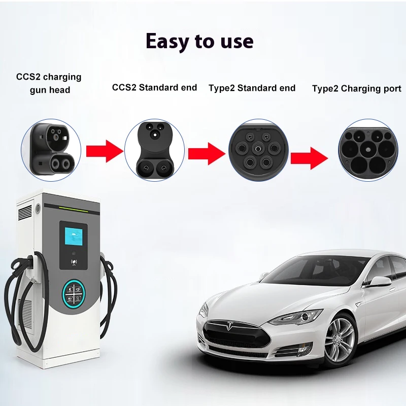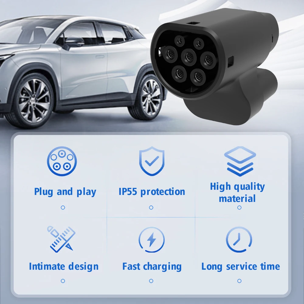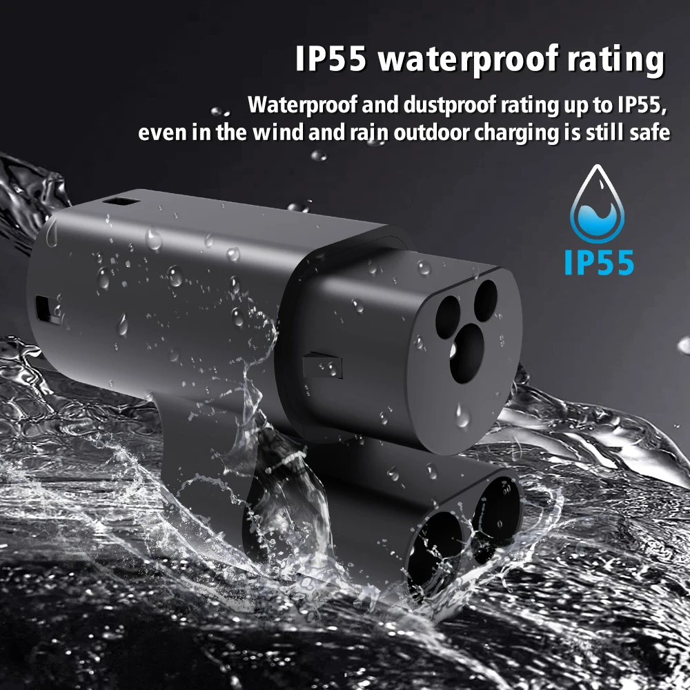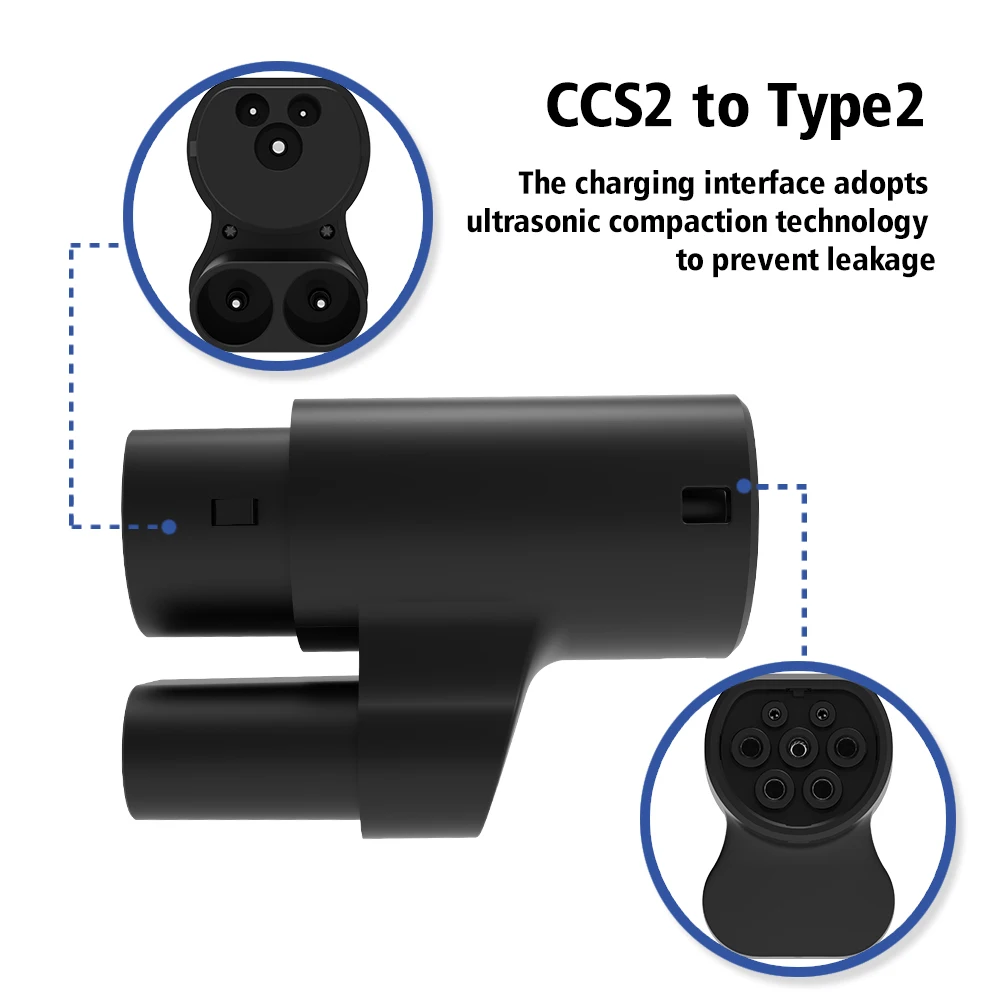 Certified for European standards (CE, TUV), the CCS2 to Type2 Adapter is fully compatible with all Type 2 electric charging stations and meets IEC 62196-3 requirements. The shell is made from flame-retardant thermoplastic (UL 94 V), and the contact pins are crafted from copper alloy with silver or nickel plating for optimal conductivity and durability. The sealing gasket is made from high-quality rubber or silicon rubber for enhanced protection.