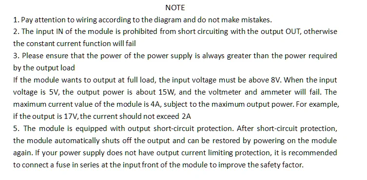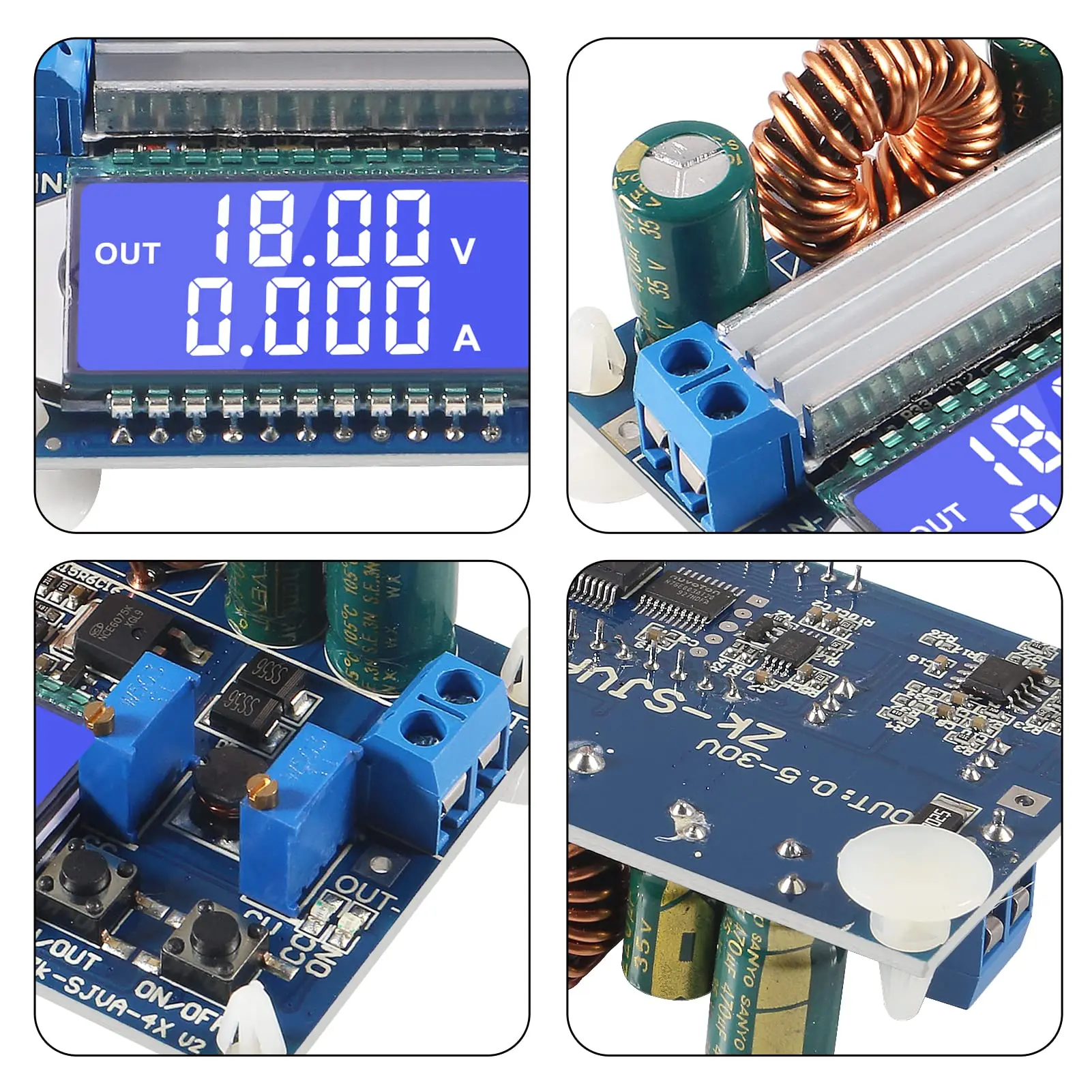 Capable of delivering a long-term stable output current of 3A (and up to 4A with enhanced heat dissipation), the converter provides a maximum output power of 35W under natural cooling and up to 50W with additional heat dissipation. The module features precise voltage and current display resolutions (.01V and .002A, respectively), allowing for accurate monitoring and adjustment. With a conversion efficiency of around 88%, it ensures minimal energy loss during operation.