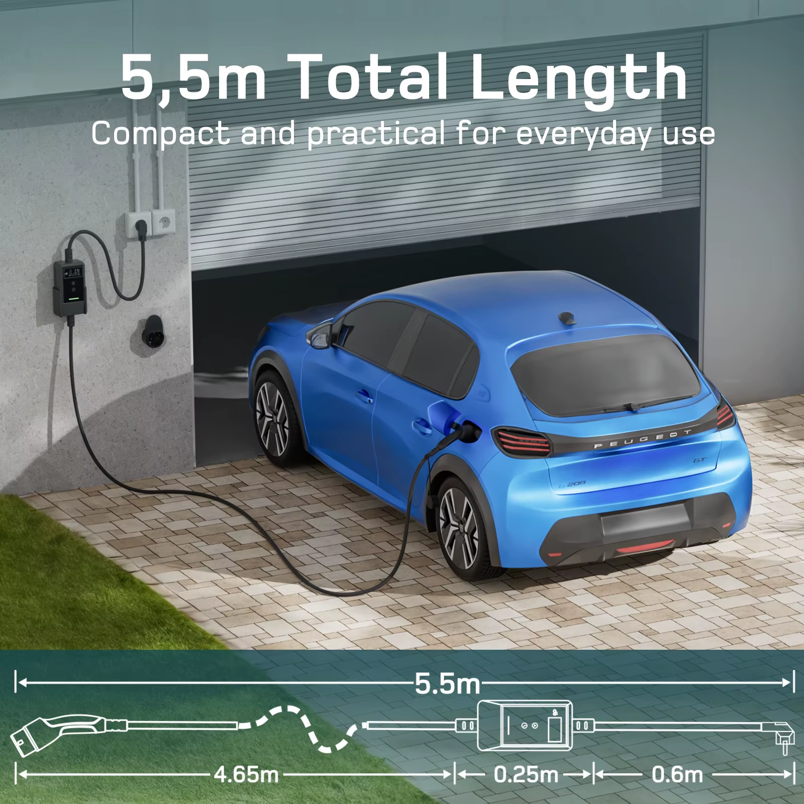 5.15m From the control box to type 2 plug
