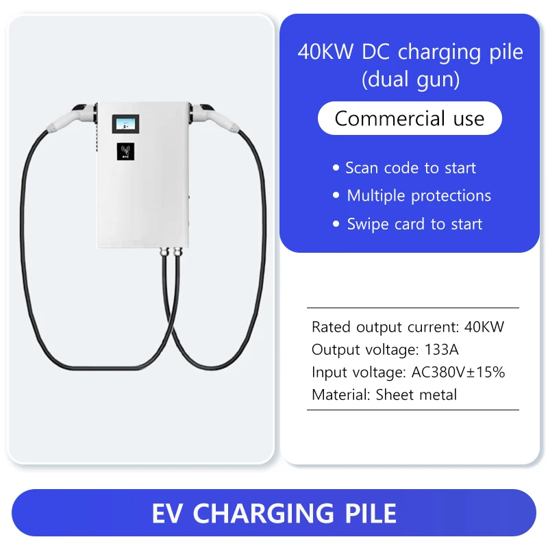 The EV Charging Station 20KW-400KW is a state-of-the-art solution designed for commercial electric vehicle charging, supporting a wide range of vehicles from passenger cars to heavy trucks. Engineered for high performance and reliability, this EV charging station features advanced smart chip technology, multiple safety protections, and a user-friendly LED display for seamless operation. With rated power options from 20KW up to 400KW, it offers flexible charging solutions for various commercial needs.