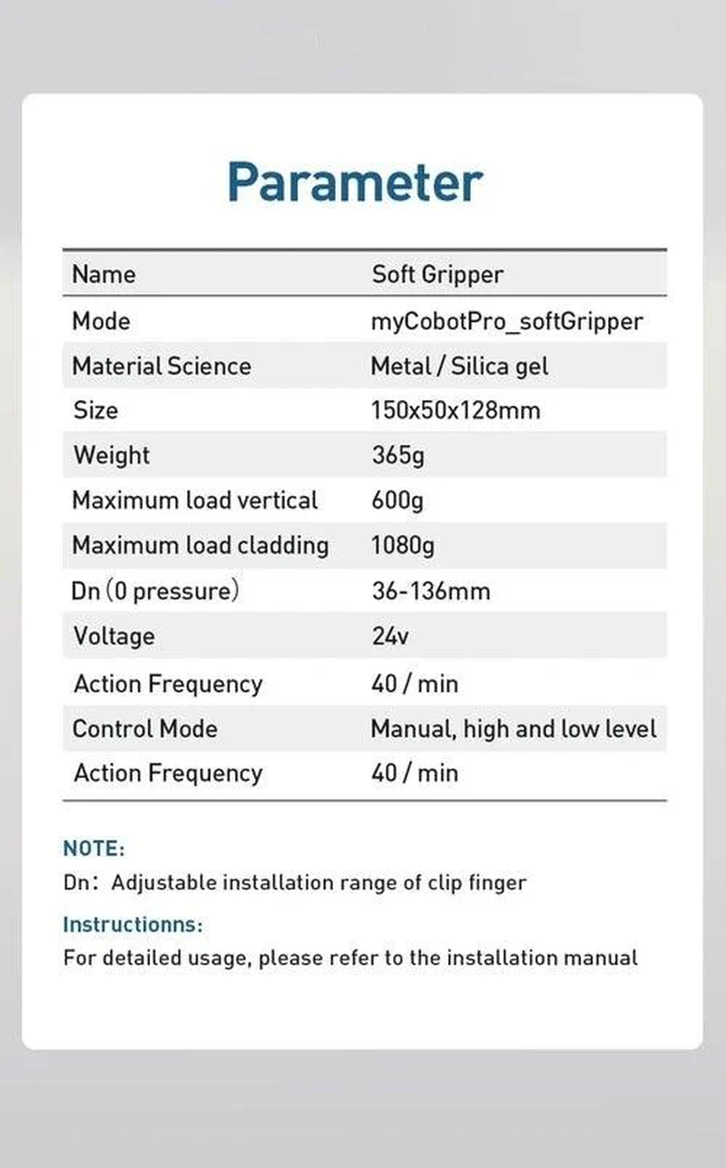 - 1 × MyCobot Pro Soft Gripper