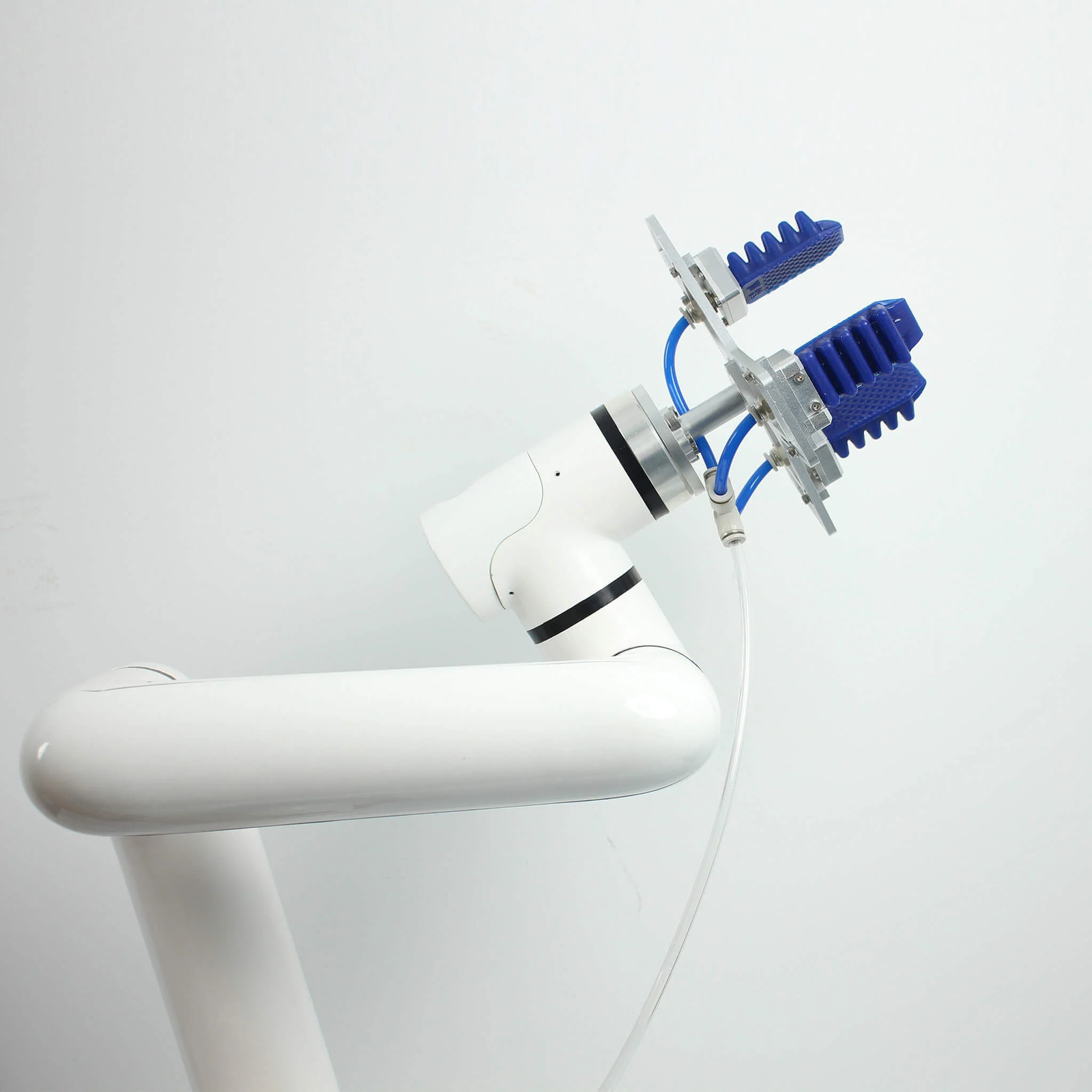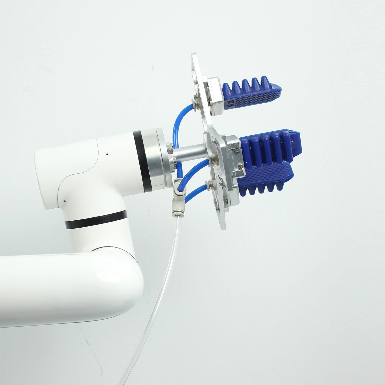 The MyCobot Pro Soft Gripper & Air Compressor is a versatile, food-safe end-effector designed for seamless integration with MyCobot 320 and Pro 630 robotic arms. Crafted from metal and silica gel, this soft gripper safely wraps around objects of various shapes and sizes without causing damage, making it ideal for applications in food handling, electronics, daily chemicals, service retail, intelligent assembly, automatic sorting, and scientific research.