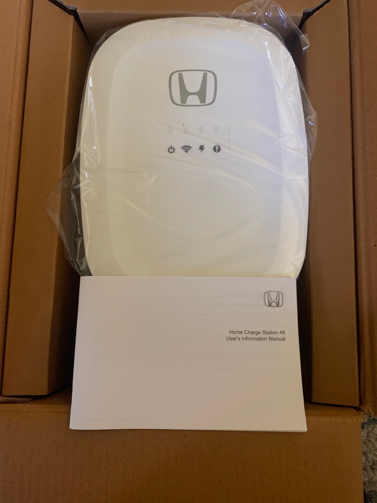 BRAND NEW Honda EV Home Charging Station. Level 2, 48 Amps charging, with a hardwire connection wiring and Type 2 connector plug. The charging station is suitable for electric, hybrid, and PHEV vehicles, with a charging rate of 11.5 KW. The station includes a 24 ft cable and connector plug mounting hardware. Reliable and efficient option for charging your electric vehicle at home.