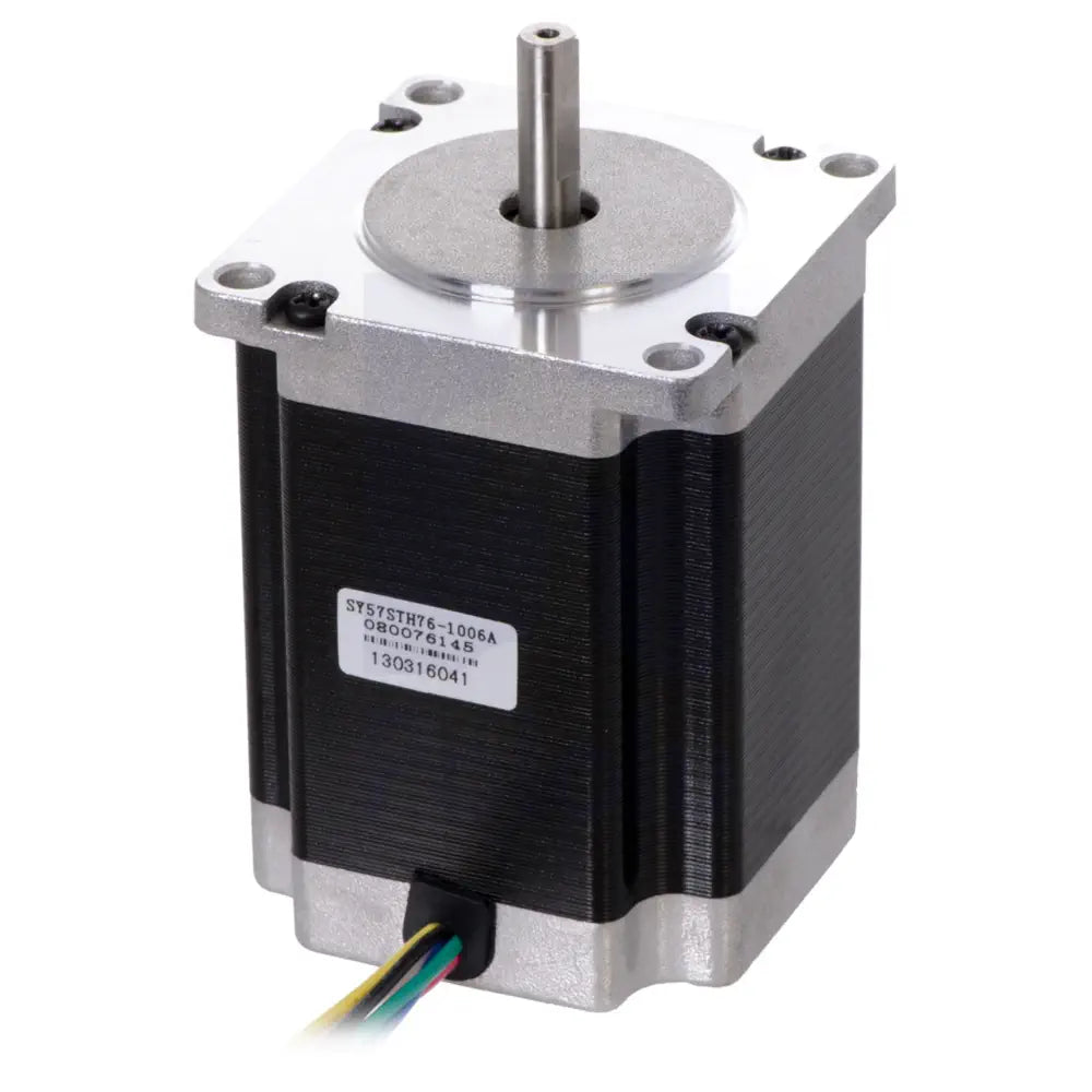 The Pololu Stepper Motor: Unipolar/Bipolar, 200 Steps/Rev, 57×76mm, 8.6V, 1 A/Phase is a versatile NEMA 23-size hybrid stepping motor designed for precision and reliability. It features a 1.8° step angle, translating to 200 steps per revolution, which ensures accurate positioning and smooth operation. This motor is capable of functioning as either a unipolar or bipolar stepper motor, providing flexibility in various applications. Each phase of the motor draws 1 ampere at 8.6 volts, delivering a substantial holding torque of 14 kg-cm (190 oz-in), making it suitable for demanding tasks requiring significant force.