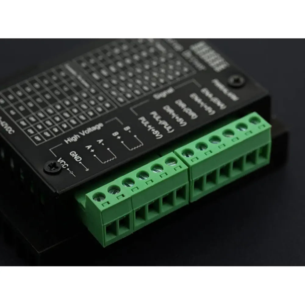 This stepper driver supports speed and direction control. You can set its micro step and output current with 6 DIP switch. There are 7 kinds of micro steps (1, 2 / A, 2 / B, 4, 8, 16, 32) and 8 kinds of current controls (0.5A, 1A, 1.5A, 2A, 2.5A, 2.8A, 3.0A, 3.5A) in all. All signal terminals adopt high-speed optocoupler isolation, enhancing its anti-high-frequency interference ability.