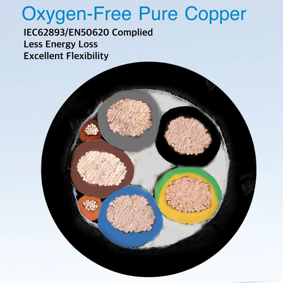 Built to the highest safety and durability standards, the cable features an IP55 protection rating, ensuring resistance to dust and water splashes for dependable outdoor use. The fire-retardant thermoplastic PC shell (UL94 V-) and robust black TPU jacket provide superior abrasion and impact resistance. The connector is crafted from copper alloy with nickel bottom plating and a 3μm silver surface plating, guaranteeing excellent conductivity and long-term corrosion resistance.
